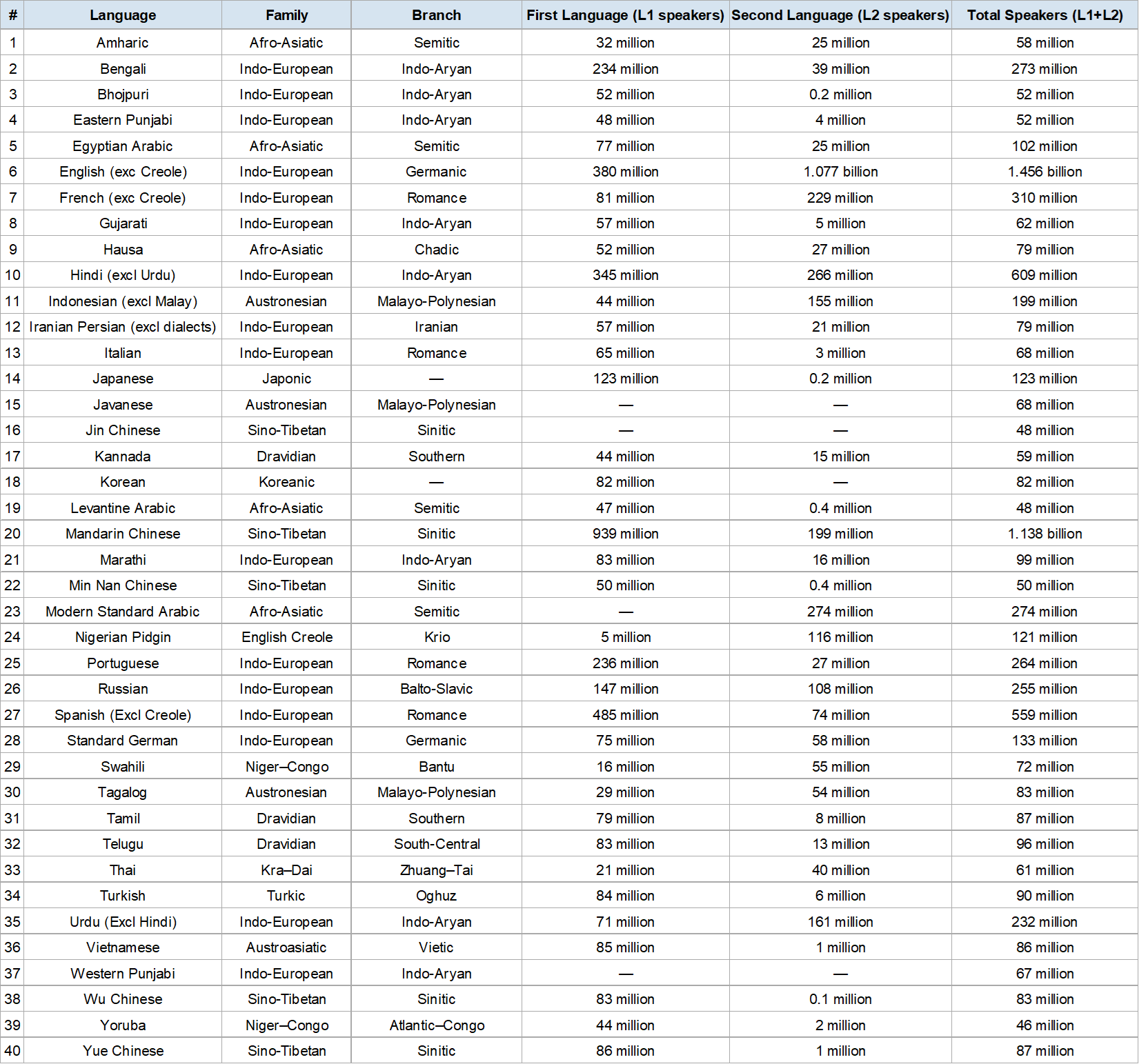 Just 23 Mother Tongue languages account for more than half the world’s population. These include 7 which are widely spoken in India.