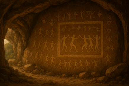 इन गुफाओं में बनी मानव आकृतियां शिकार और धार्मिक अनुष्ठानों में लगी हुई दिखाई देती हैं। यह चित्र प्रकृति और उस समय के लोगों की आध्यात्मिक मान्यताओं के बीच एक गहरे संबंध को दर्शाते हैं। एक गुफा की दीवार पर बना एक चित्र सबका ध्यान खींचता है। इसमें लोगों को एक साथ सामूहिक नृत्य करते हुए दिखाया गया है। चित्र में एक तरफ 34 लोग हैं, तो दूसरी तरफ 28 लोग नृत्य कर रहे हैं।